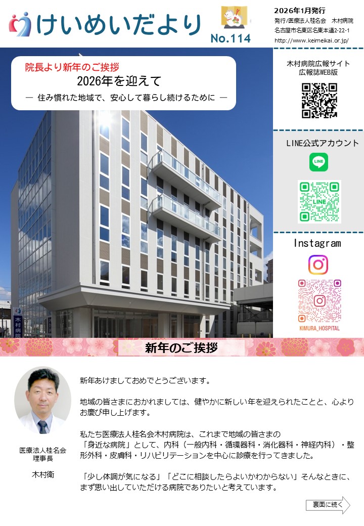 2026年1月の木村病院 院内広報誌【けいめいだよりNo.114】をお届けします。